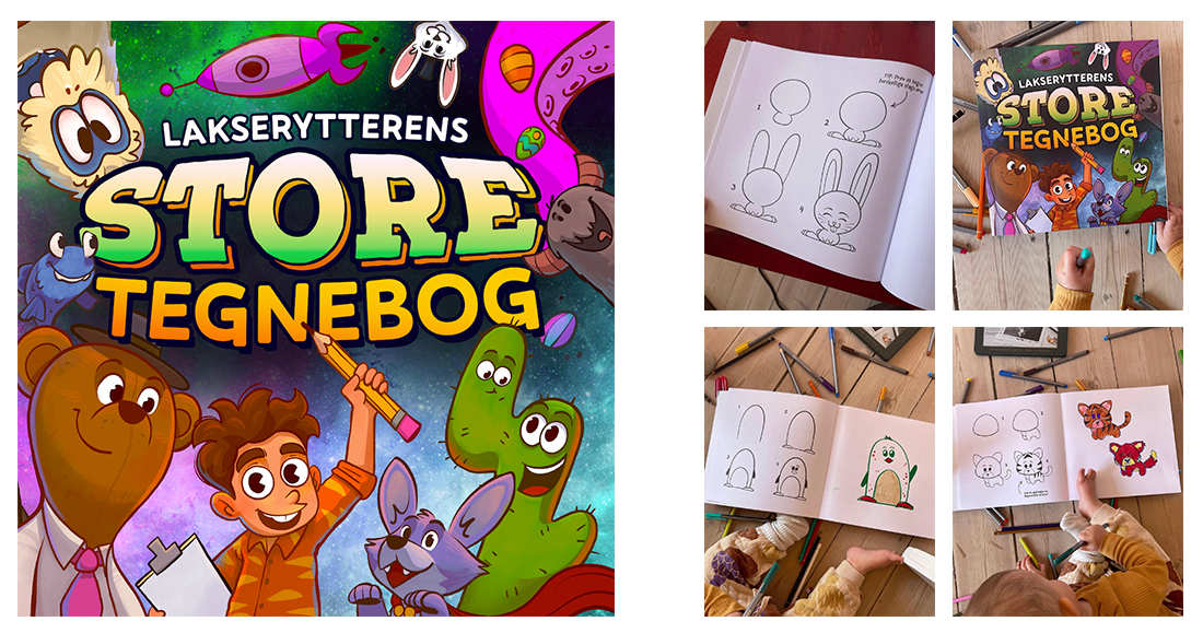 Instructional drawing book featuring 100+ step-by-step tutorials, created for Lakserytteren.