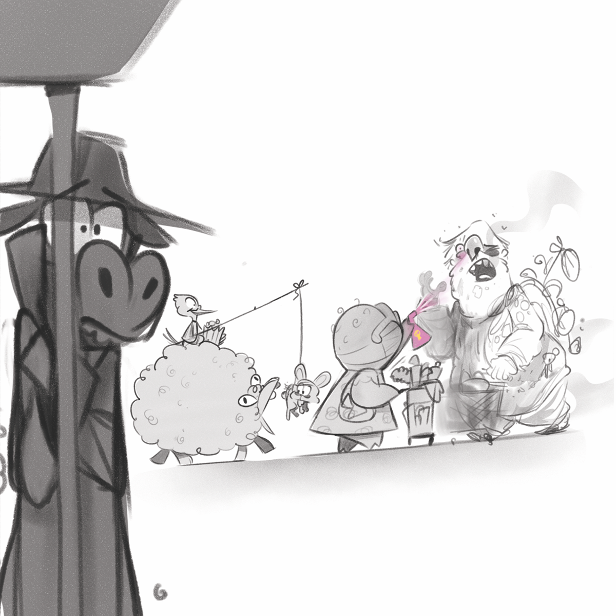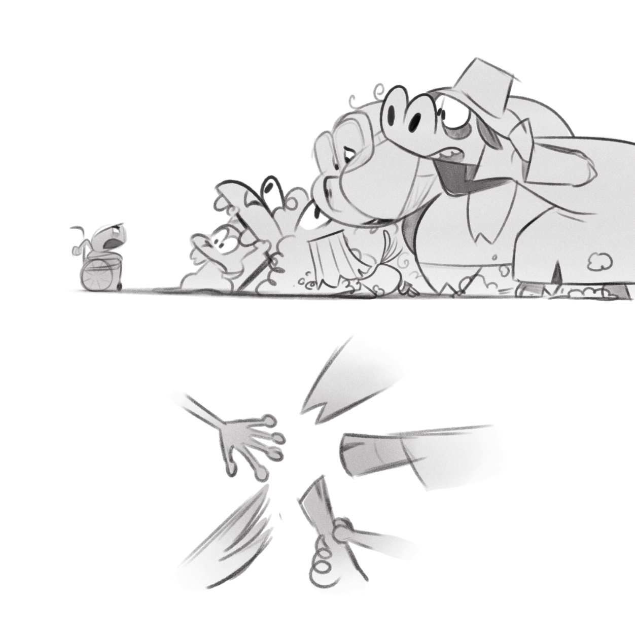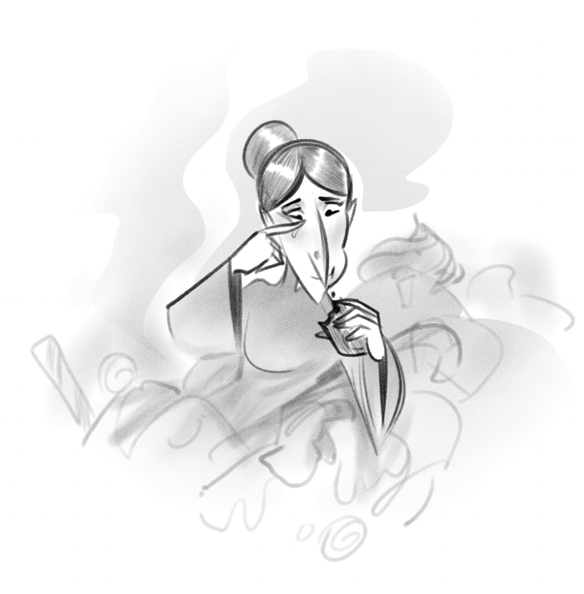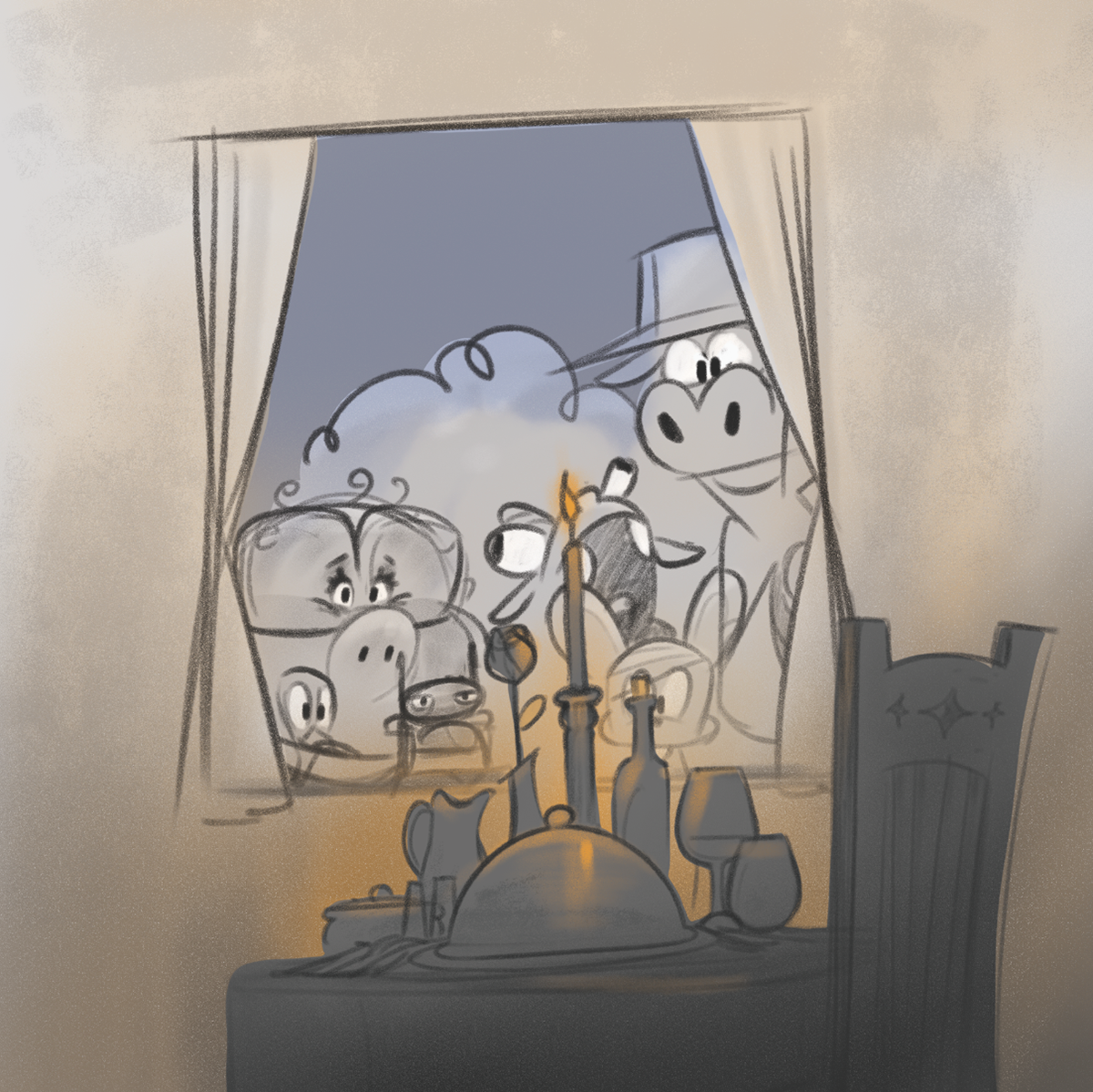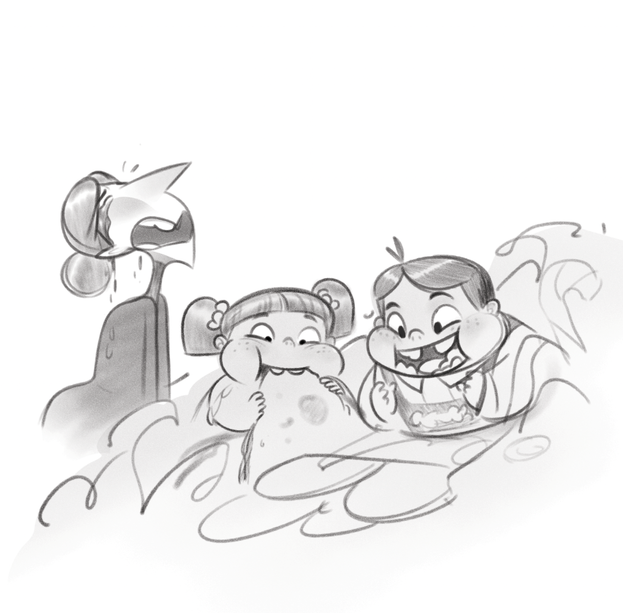 Lisa has a cat, a goldfish, a mouse, and a bird. Every morning she wakes up to find a pet has been eaten. When only her cat is left, she takes it to her room and stays up all night to protect it. That night, she hears someone snacking in the kitchen and is surprised to see a giant troll eating her food. Lisa grabs the troll by its tongue, being sure he ate her pets. The troll gets sad and starts crying. Lisa realizes he meant no harm, so she comforts the troll and makes up a nice a bed for him. The next morning, the troll is gone. Lisa wonders where he might be and hopes he's alright, not realizing it was her cat who ate him, and all the other pets.