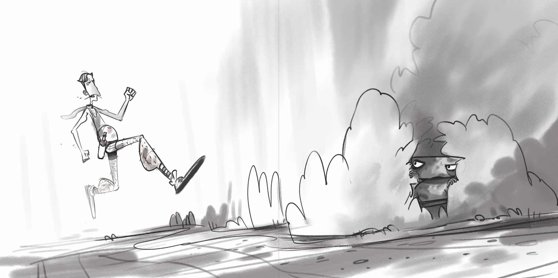 A skeleton wakes up in his grave. Why he is waking up he does not know. Despite his fear of the dark, he goes up. Unable to fall back asleep, he takes a walk but starts to feel lonely. He decides to dig up some company and finds a dog to play with during the night. When they play fetch the bone flies outside the graveyard, and out of their reach. Then out of the dark an old lady and her little dog come along. They walk up the graveyard and place a light at the skeleton's grave. With the light to keep him safe, the skeleton returns to his grave and falls back into sleep.